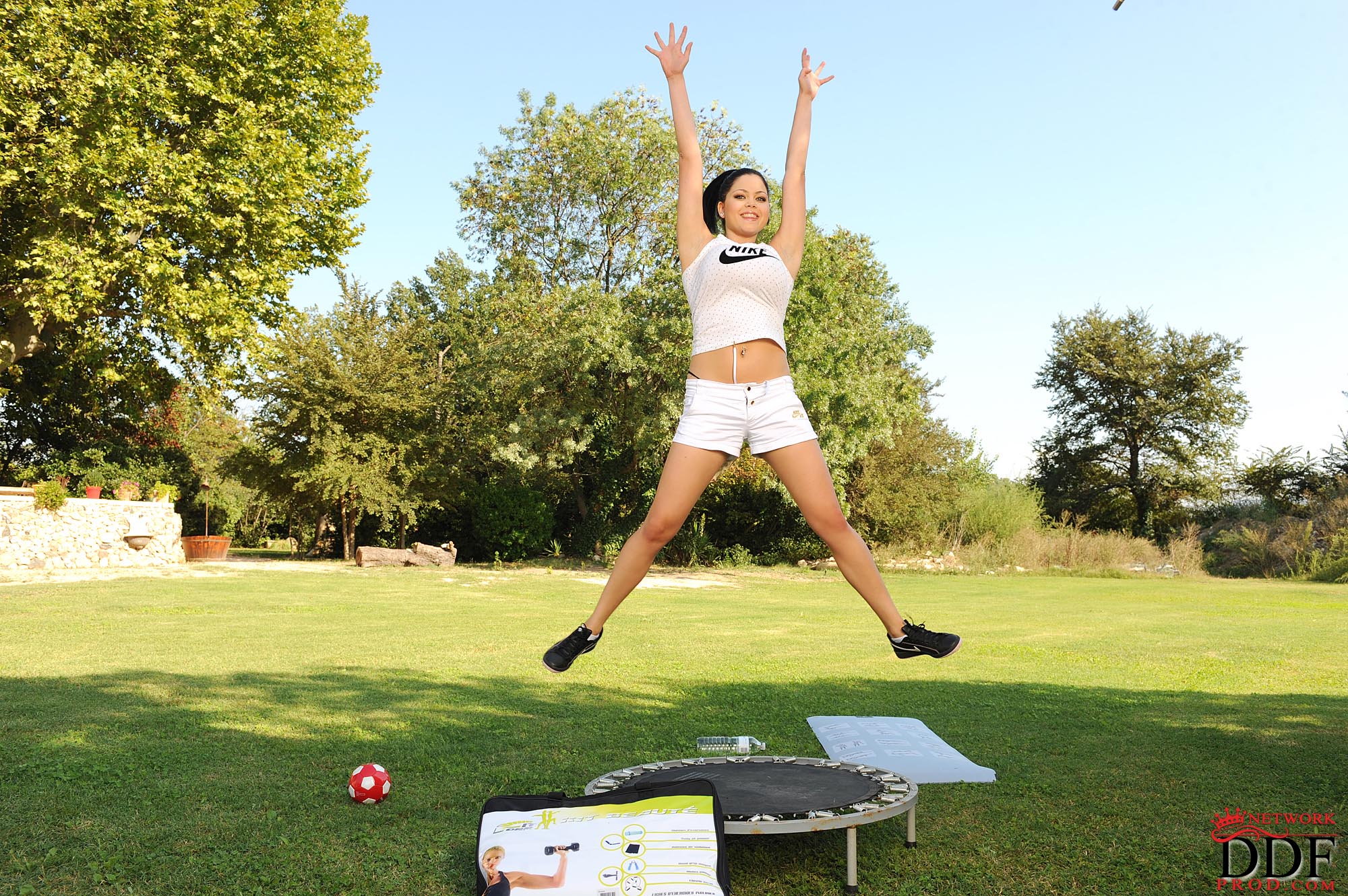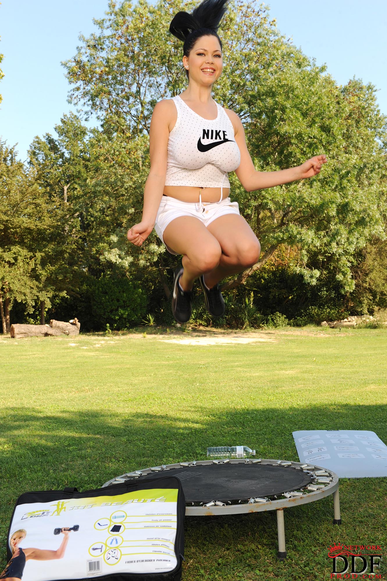 Красивая молодая брюнетка с зелёными глазами и огромными натуральными сиськами Shione Cooper, пришла в парк и разделась догола на зелёной лужайке. Весёлая любительница пирсинга хорошо провела время, занимаясь гимнастикой на свежем летнем воздухе и лаская свои девичьи прелести.