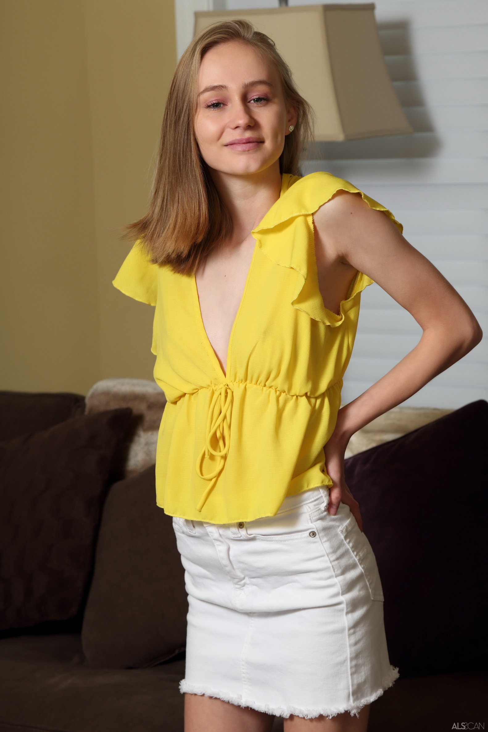 Тощая американская девушка с голубыми глазами и светлыми волосами Alicia Williams, снимает юбочку, под которой на ней не надеты трусики и демонстрирует свою красивую обнажённую фигурку. Молоденькая симпатяжка в разных ракурсах показывает свою чисто побритую писю и небольшую грудь.