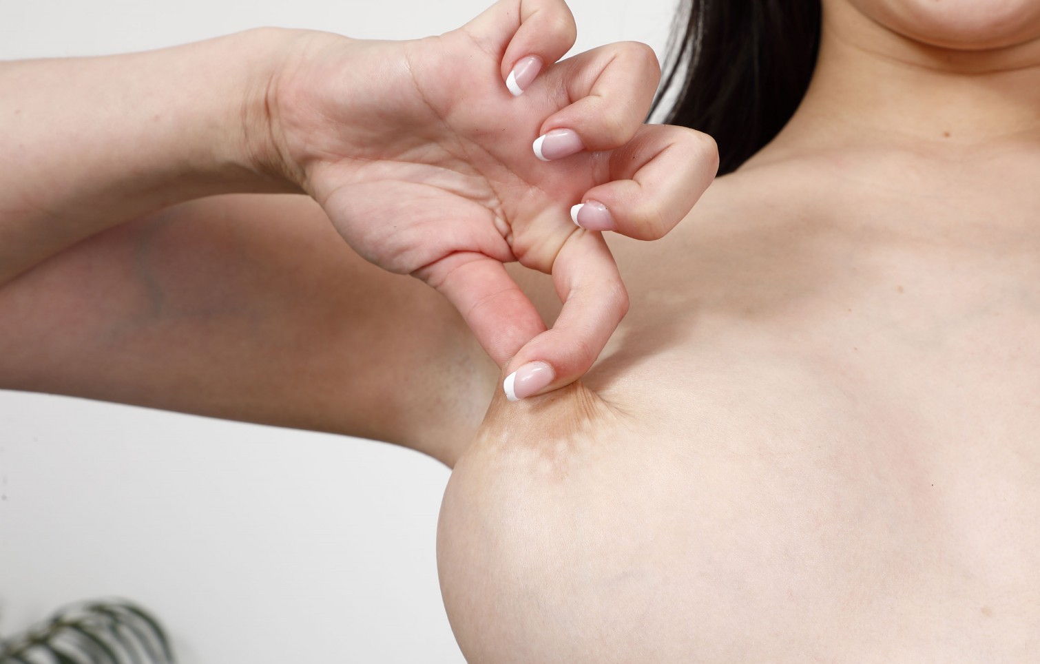 Игривая молодая брюнетка с большими титьками и татушками Jade Baker