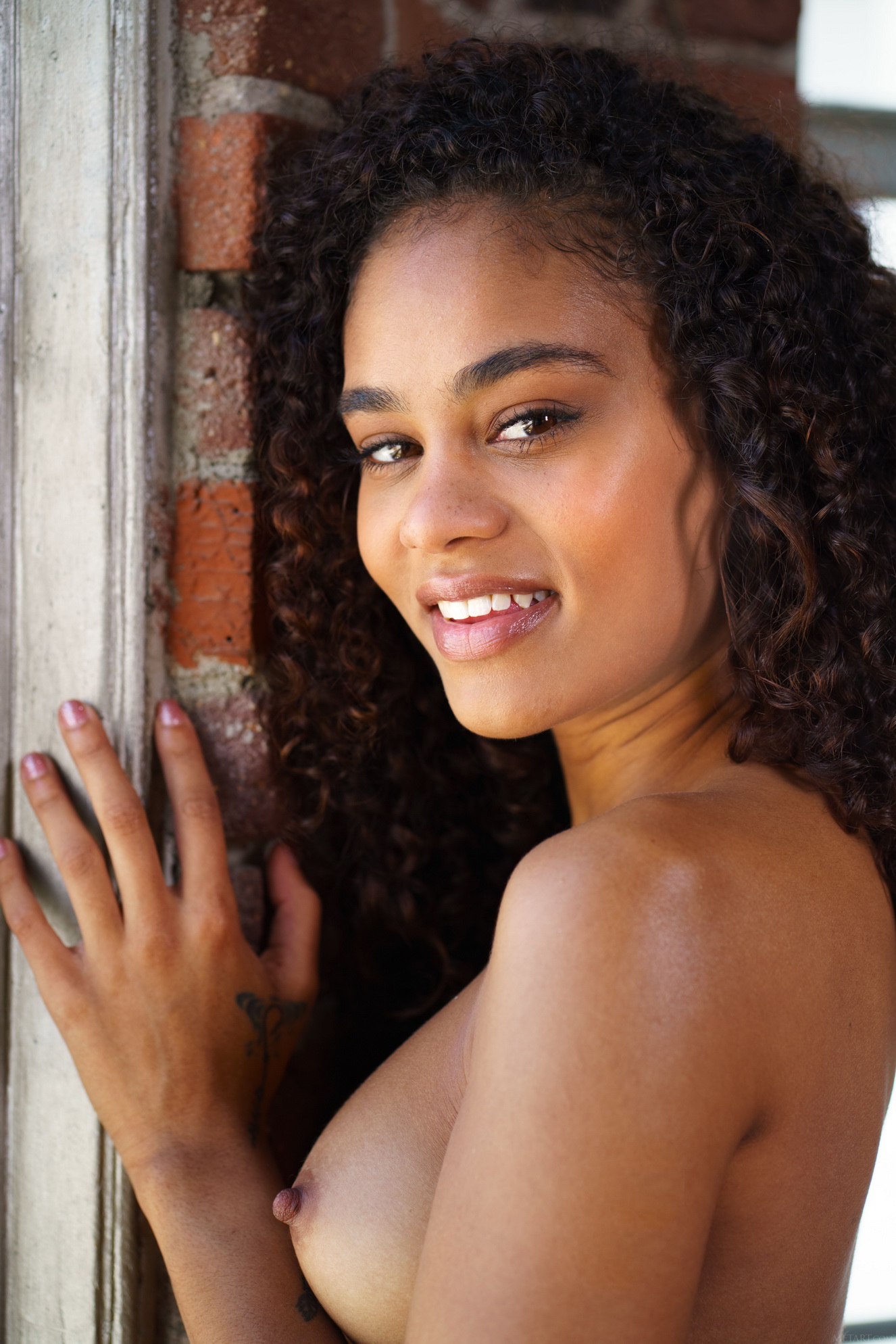 Молодая американская мулатка с кудрявыми каштановыми волосами Scarlit Scandal, снимает розовое платье и демонстрирует худенькое обнажённое тело. Эта весёлая кареглазая смуглянка с татуировками на руке, с удовольствием показывает в разных ракурсах свои сексуальные девичьи прелести.