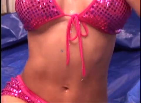 Busty asian chick first oiled then fucked