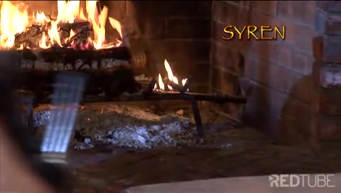 Horny asian at the fireplace