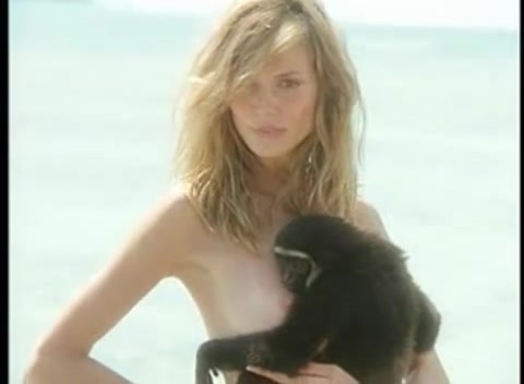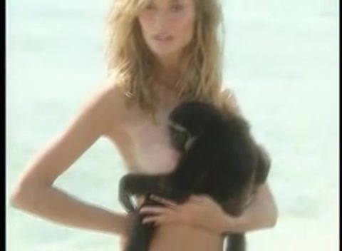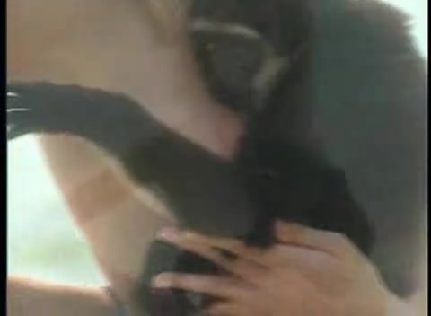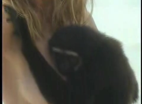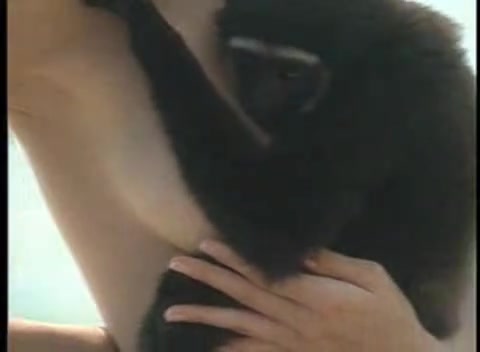 Девушка прижала к сиськам обезьянку