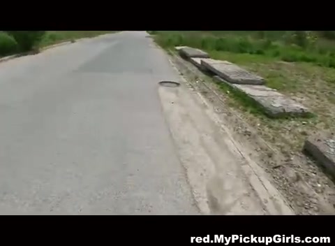 Девушка на роликовых коньках занимается сексом на дороге