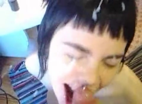 Поток спермы бьёт прямо ей в лицо