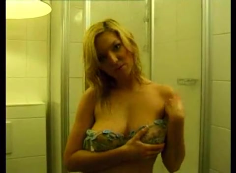 Горячая грудастая девушка мастурбирует под струёй воды