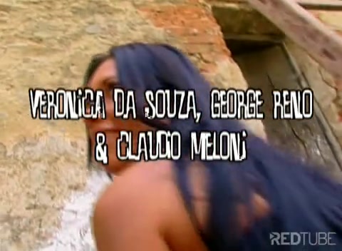 Молодая девица ебёца с двумя мужчинами у старого дома