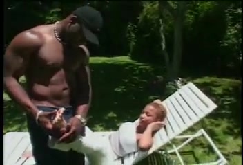Красивая молодая негритянка делает минет на лужайке