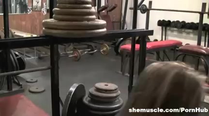 Гибкая девушка с бритой пилоткой занимается в тренажерном зале