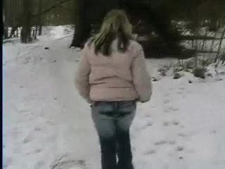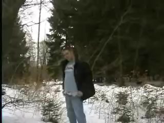 18-летняя немка делает минет и трахается с парнем в зимнем лесу