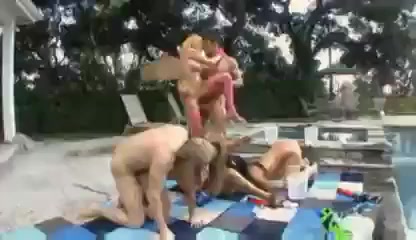 Сладкая оргия у бассейна с молодыми весёлыми девчонками