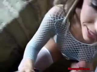 Парень заснял на видео подружку в сетчатом боди делающую минет