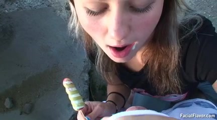 Девка сосала мороженое на палочке, чтобы научиться сосать член