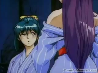 Горячие хентай лесбиянки удовлетворяют друг дружку мочалкой
