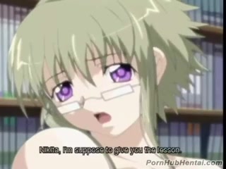 Парень в библиотеке присосался к огромным сиськам очкастой девки