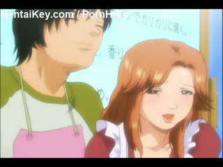 Две грудастые аниме малышки вместе сосут возбуждённый член парня