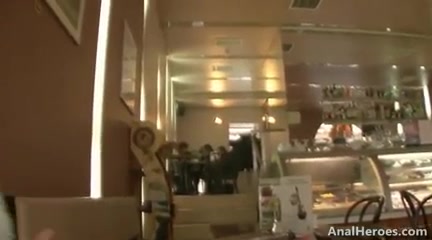 Рыжая девушка из кафе занималась анальным сексом в красном белье