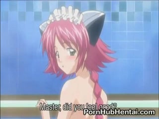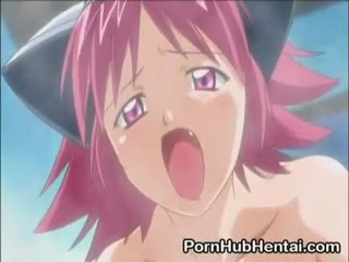 Милая аниме девчонка с розовыми волосами садится на длинный член