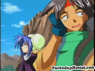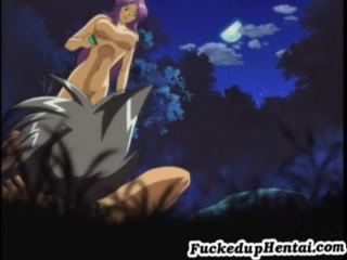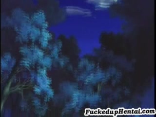 Хентай девушка с большой грудью занималась сексом с парнем в лесу