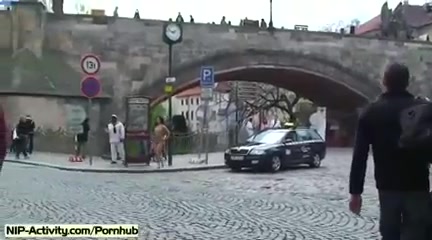 Сумасшедшая девка гуляет голышом по улицам и посещает магазины