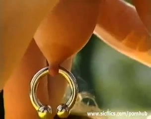 Грудастой красотке с пирсингом вставляют гигантский фаллоимитатор