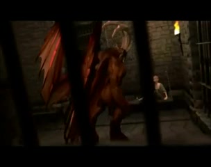 В камеру к заключённой в тюрьме 3D девке вошёл демон и оттрахал