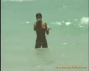 Девушки купаются и загорают на солнечном пляже в обнажённом виде