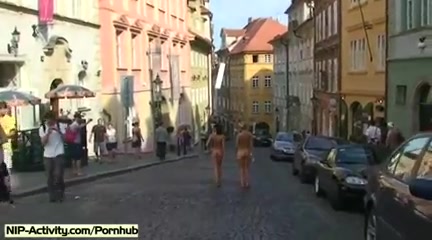 Юные красавицы Leonelle и Laura гуляют голышом по городским улицам