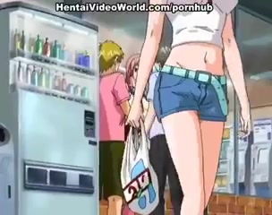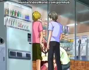 Трое ребят зажали в углу аниме девчонку и заставили сделать минет