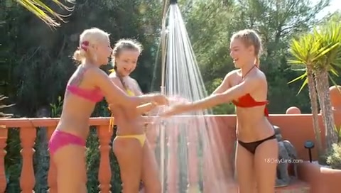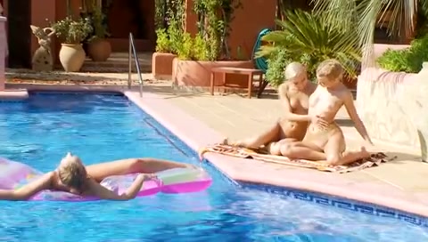 Русские лесбиянки купались в открытом бассейне и занимались сексом