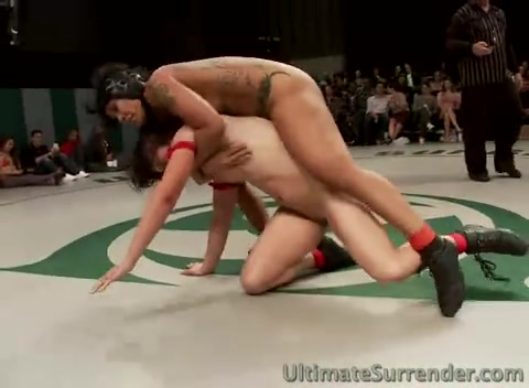 Девчонки борются на ринге в голом виде, а потом занимаются сексом