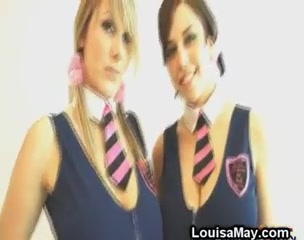 Две молодые грудастые девки ласкают друг дружку перед камерой