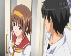 Сисястая хентай детка с розовыми волосами делала минет на кровати