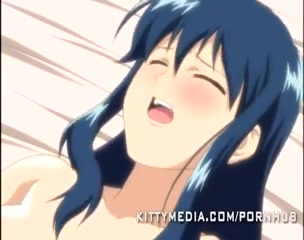 Хентай девушка с синими волосами сделала минет и залезла на член