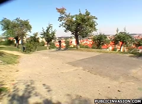 Симпатичная блондинка показала пизду и трахнулась возле дороги