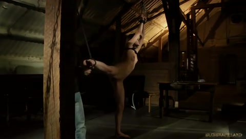Связанной рабыне вставили в жопу большой шприц и закачали воду