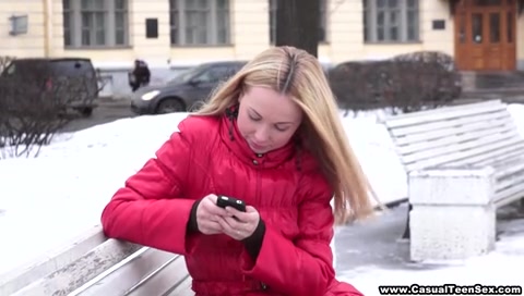 Блондинка познакомилась на улице с парнем и дала себя трахнуть