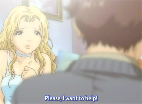 Светловолосая хентай девчонка подрочила мальчику член сиськами