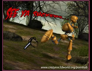 3D блондинка повстречала в лесу сексуально озабоченного робота