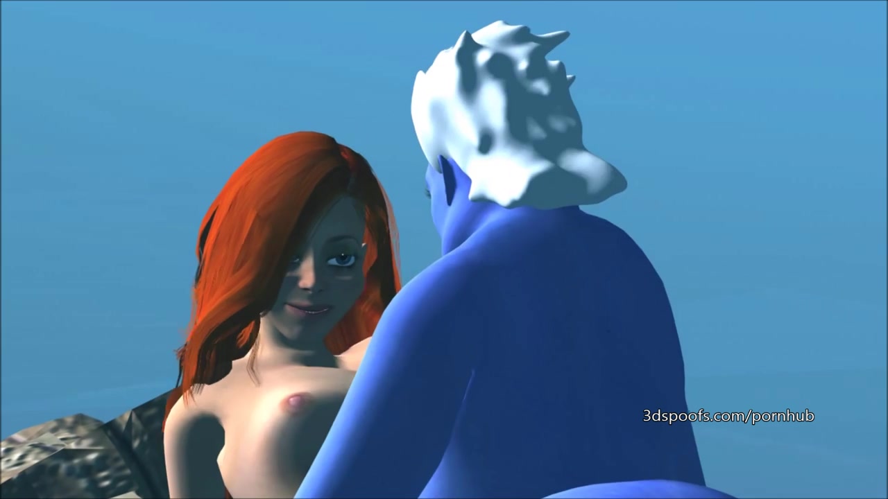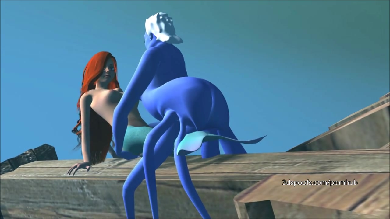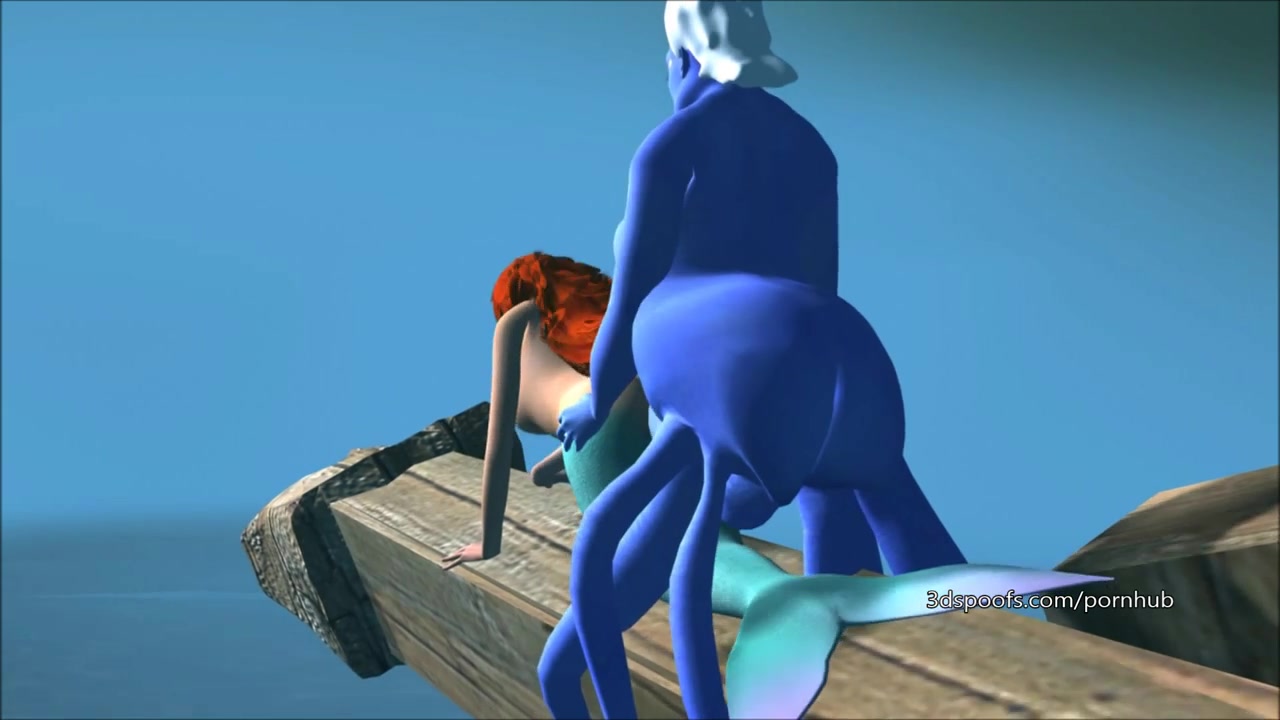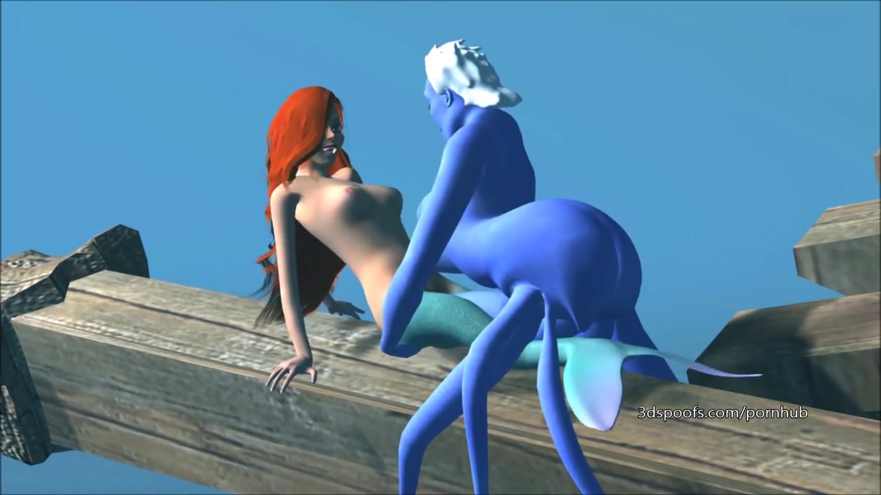 3D русалочка с рыжими волосами на дне трахается с морским чудом