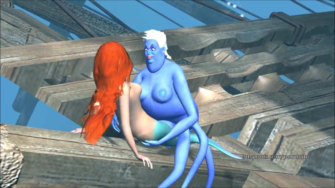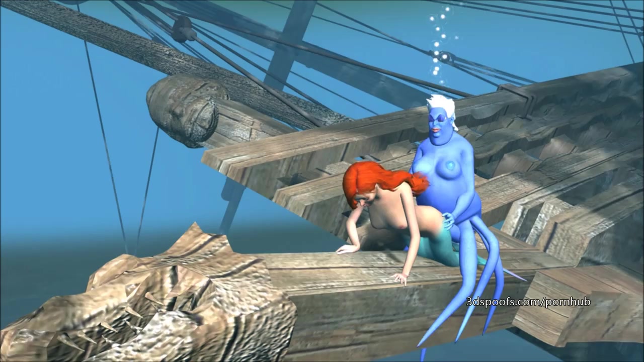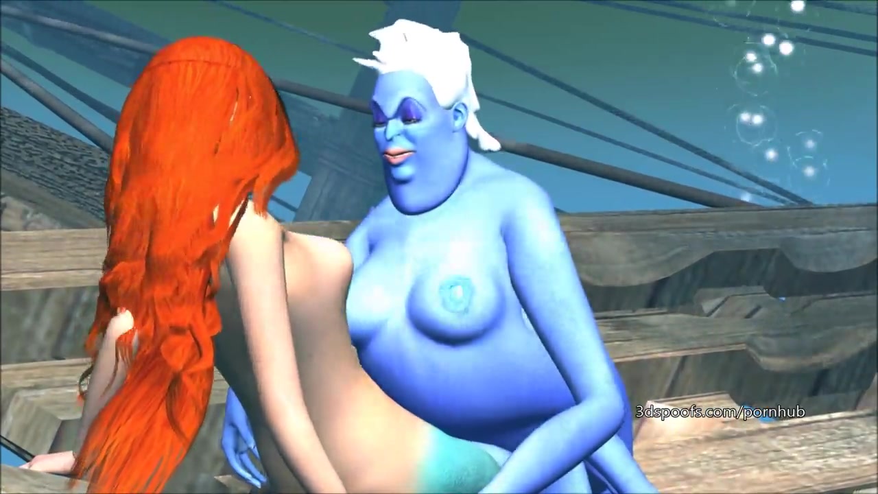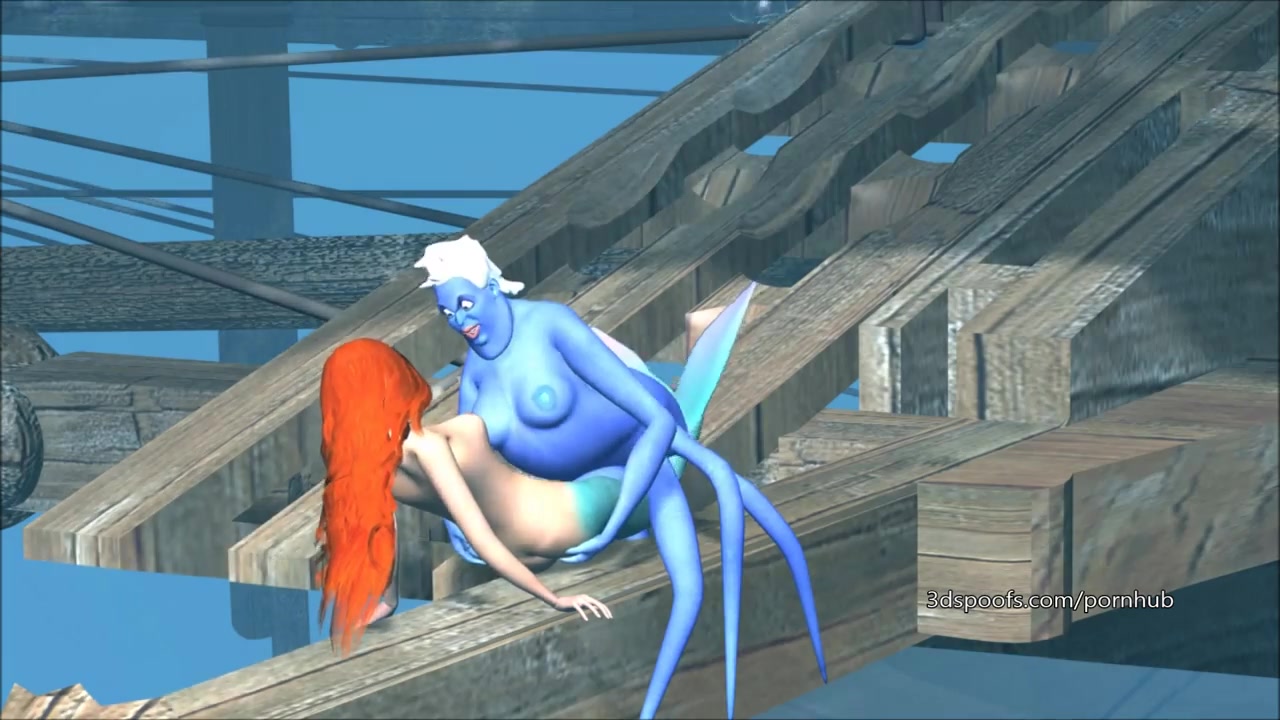 3D русалочка с рыжими волосами на дне трахается с морским чудом