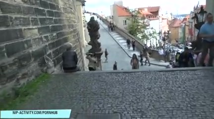 Горячая девушка Mona Lee прогуливается голышом по старому городу