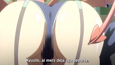 Хентай девушка с розовыми волосами дрочила член большой грудью
