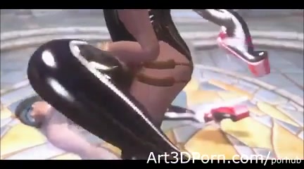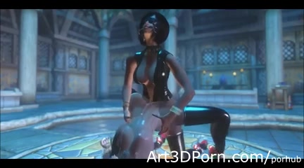 3D дама в латексном белье и маске трахает страпоном свою подругу