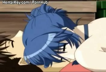 Хентай девка с голубыми волосами сделала минет и залезла на член