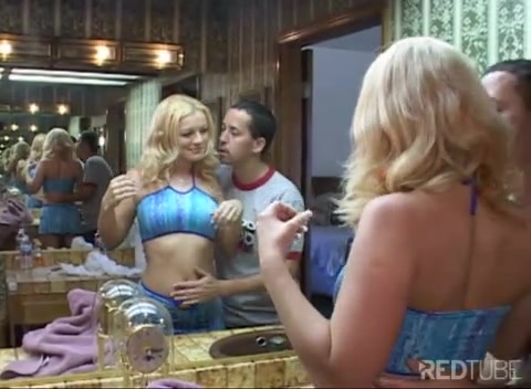 Парень застал у зеркала красивую блондиночку и дал отсосать член