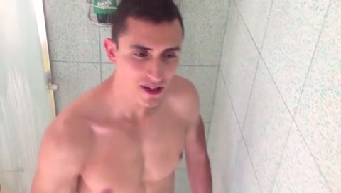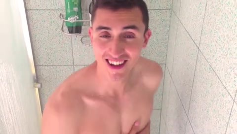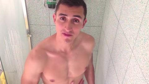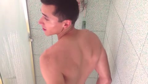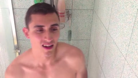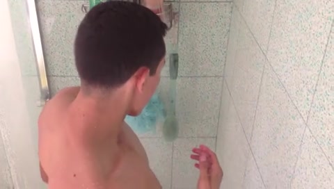 Симпатичный молодой гей Антонио принимает душ и болтает с другом