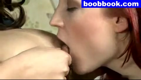Рыжая лесбиянка ласкала огромные сиськи подружке и пила молоко