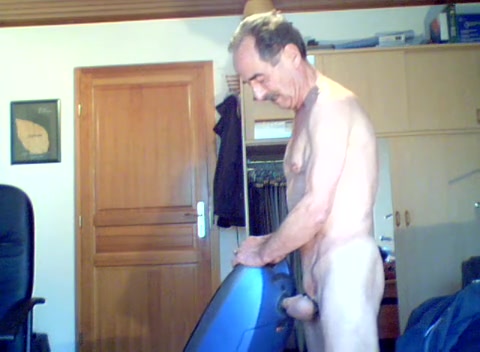 Престарелый усатый мужчина использует пылесос в качестве вагины