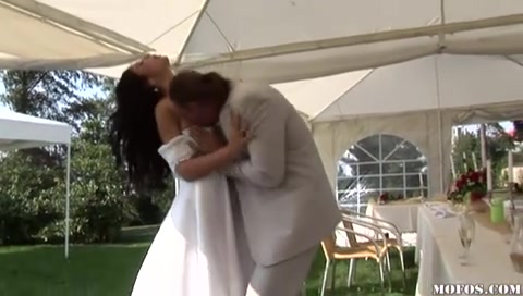 Жених и невеста вместе с гостями занимаются любовью на свадьбе